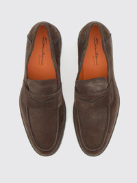 Men's dark brown suede penny loafer