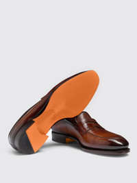 DESCRIPTION - Details: With penny keeper - Lining: With logo - Toe: Raised toe box - Sole: Leather - Materials: Calfskin - Pattern: undefined DETAILS AND CARE Composition UPPER: CALF 100%; LINING: CALF 100%; SOLE: LE SIZE AND FIT Sizes not available Designer code: MCAD18935MC3HWVE T50 Giglio Code: H11486 Designer: Santoni Collection: Santoni Men Category: Shoes Santoni