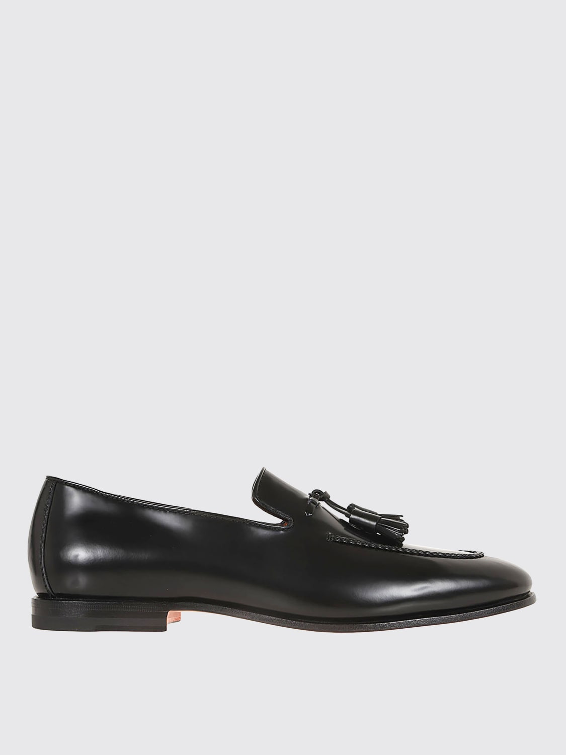 DESCRIPTION - Details: With tassels - Lining: With logo - Toe: Raised toe box - Sole: Leather - Materials: Brushed leather - Pattern: Plain-colored DETAILS AND CARE Composition Leather | 100% LEATHER SIZE AND FIT Sizes not available Designer code: MCNG18458SA4BPOH N01 Giglio Code: H12641 Designer: Santoni Collection: Santoni Men Category: Shoes Santoni