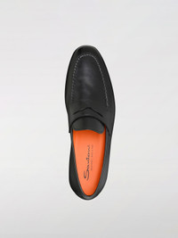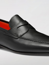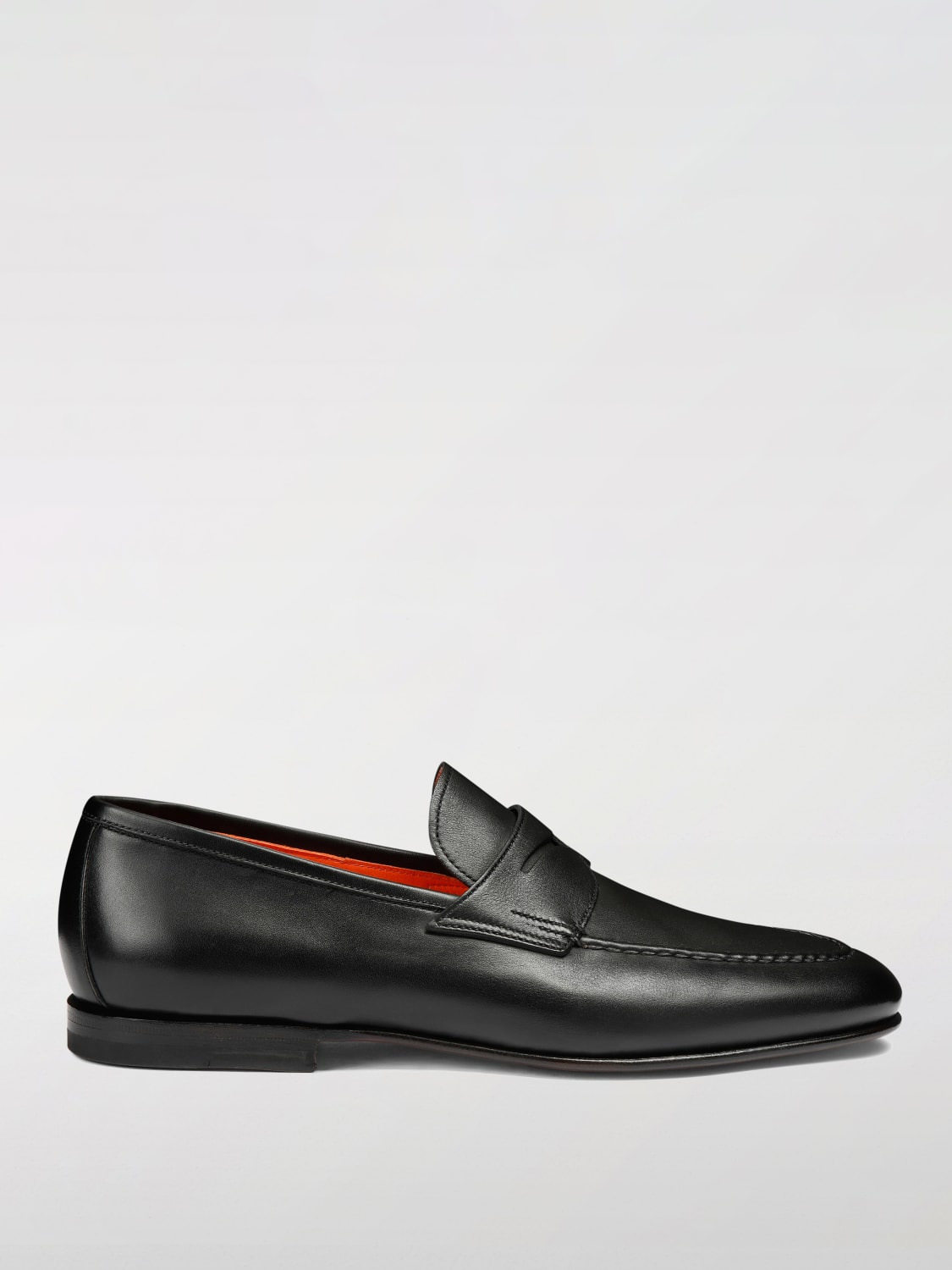 DESCRIPTION - Details: With penny keeper - Lining: With logo - Model: Slip on - Toe: Raised toe box - Sole: Leather - Materials: Smooth cowhide - Pattern: Plain-colored DETAILS AND CARE Composition Upper: CALF 100%; Lining: LAMB 87% GOAT 13%; SIZE AND FIT Sizes not available Designer code: MCNC15609SA3BSLF N01 Giglio Code: G46494 Designer: Santoni Collection: Santoni Men Category: Shoes Santoni