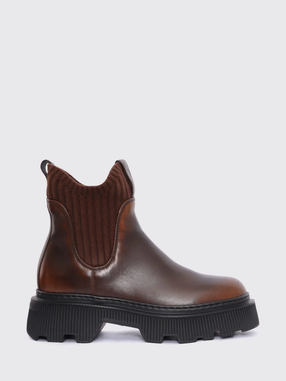 DESCRIPTION - Style: Urban-street - Details: With back tab - Lining: Leather, With logo - Model: Chelsea - Toe: Round - Shaft: Low - Sole: Dented tread, Rubber - Ankle: Stretch - Heel: Low heel - Occasion: Morning - Materials: Smooth leather - Pattern: Plain-colored DETAILS AND CARE Composition 2% ELASTANE 1% MICROMODAL 12% POLYAMIDE 72% C SIZE AND FIT Sizes not available Designer code: WTCW71705NERTLGX M40 Giglio Code: H70088 Designer: Santoni Collection: Shoes Santoni Category: Shoes > Boots