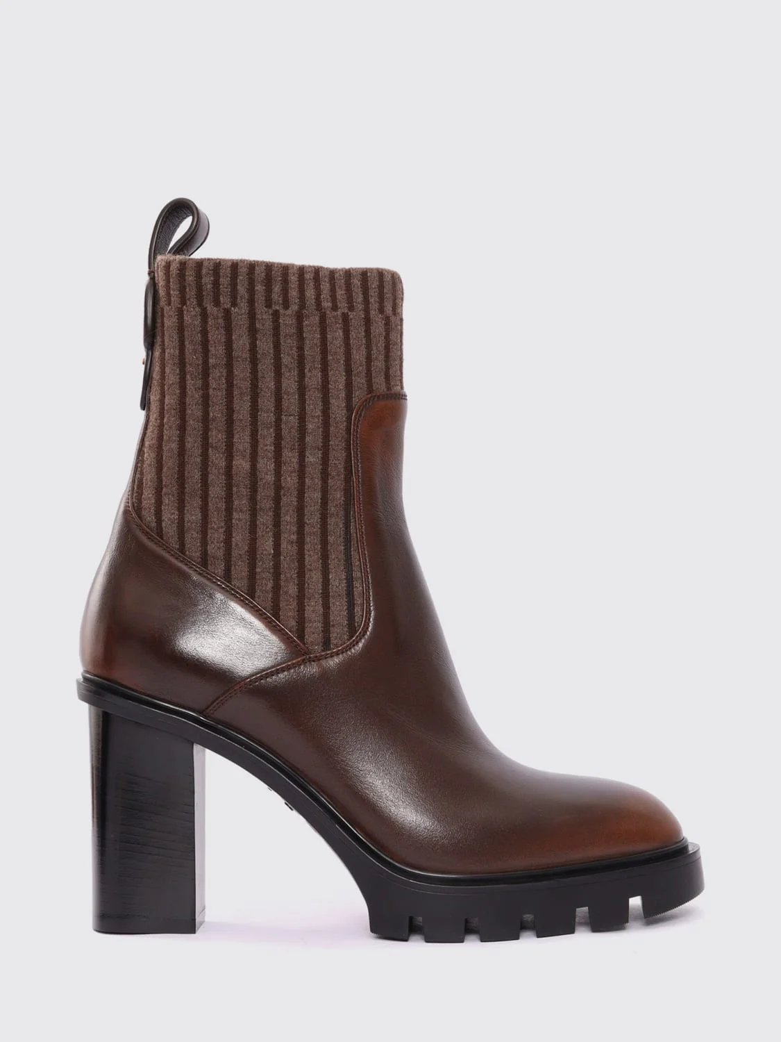 DESCRIPTION - Style: Contemporary - Details: With back tab - Lining: Leather, With logo, Wool - Toe: Round - Shaft: Low - Sole: Dented tread, Rubber - Ankle: Stretch - Heel: High heel - Occasion: Morning - Materials: Smooth calfskin - Pattern: Plain-colored - Model: Ankle boots DETAILS AND CARE Composition 2% ELASTANE 8% NYLON 82% CALFSKIN 8% WOOL LIN SIZE AND FIT Sizes Heel: 7,5 cm Designer code: WTCT71920HL8NLGX M40 Giglio Code: H64278 Designer: Santoni Collection: Shoes Santoni Category: Shoes > Boots