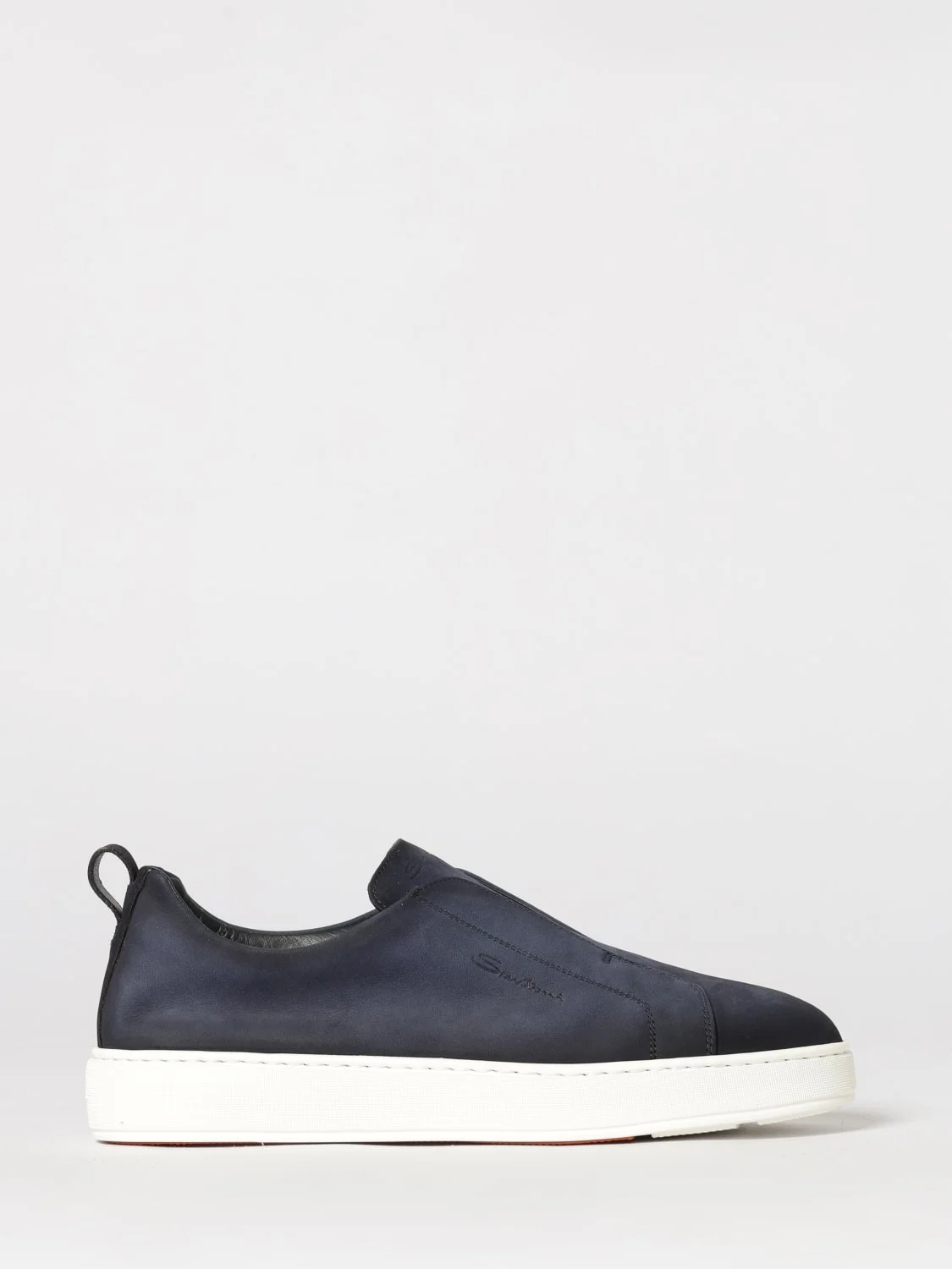 DESCRIPTION - Style: Casual - Logo: Engraved - Details: With back tab, With stretch details - Lining: Leather, With logo - Model: Slip on - Toe: Round - Ankle: Low top, Padded - Sole: Rubber - Occasion: Morning - Materials: Nubuk - Pattern: Plain-colored DETAILS AND CARE Composition SOLE RUBBER 100 - UPPER CALF LEATHER BOS TAUR SIZE AND FIT Sizes not available Designer code: MBCD21995BARTFEH U59 Giglio Code: H86107 Designer: Santoni Collection: Santoni Men Category: Shoes Santoni