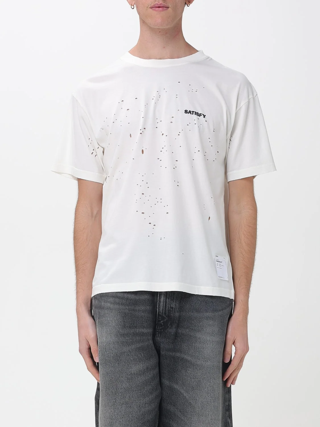 DESCRIPTION - Style: Sporty, Urban-street - Logo: Contrasting - Model: Crewneck - Neckline: Crewneck - Shoulders: Regular - Sleeves: Short - Bottom: With straight hemline - Materials: Cotton - Pattern: Logo, Plain-colored DETAILS AND CARE Composition not available SIZE AND FIT Sizes not available Size and fit Regular fit Designer code: 11006OWSAB OFFWHITE Giglio Code: H82951 Designer: Satisfy Collection: Satisfy Men Category: Clothing Satisfy
