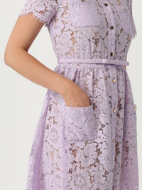 DESCRIPTION - Style: Romantic - Model: Chemisier - Neckline: Crewneck - Shoulders: Regular - Closure: With buttons - Pockets: Patch pocket with button - Waist: With belt - Bottom: Weaved - Length: Midi dresses - Occasion: Evening and party dresses - Sleeves: undefined - Materials: Lace - Pattern: Plain-colored DETAILS AND CARE Composition _70% PA 30% CO SIZE AND FIT Sizes not available Size and fit Regular fit Designer code: PF25006ML LILAC Giglio Code: H11970 Designer: Self-Portrait Collection: Self-Portrait Woman Category: Clothing Self-Portrait