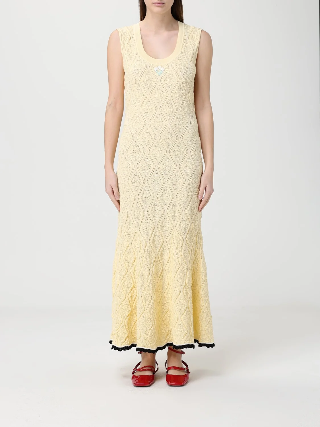 Yellow Pointelle Knit Midi Dress