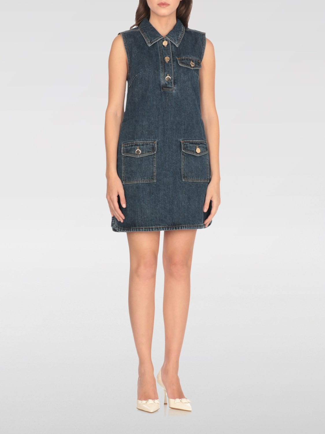 DESCRIPTION - Style: Urban-street - Neck: Classic - Shoulders: Regular - Closure: With 3-button placket - Pockets: Patch pocket with flap and button - Bottom: With straight hemline - Length: Mini dresses - Occasion: Morning dresses - Sleeves: Off-the-shoulder dresses - Materials: Cotton denim - Pattern: Plain-colored DETAILS AND CARE Composition 100% Cotton SIZE AND FIT Sizes not available Size and fit Regular fit Designer code: PF25803SBL BLUE Giglio Code: H19306 Designer: Self-Portrait Collection: Self-Portrait Woman Category: Clothing Self-Portrait