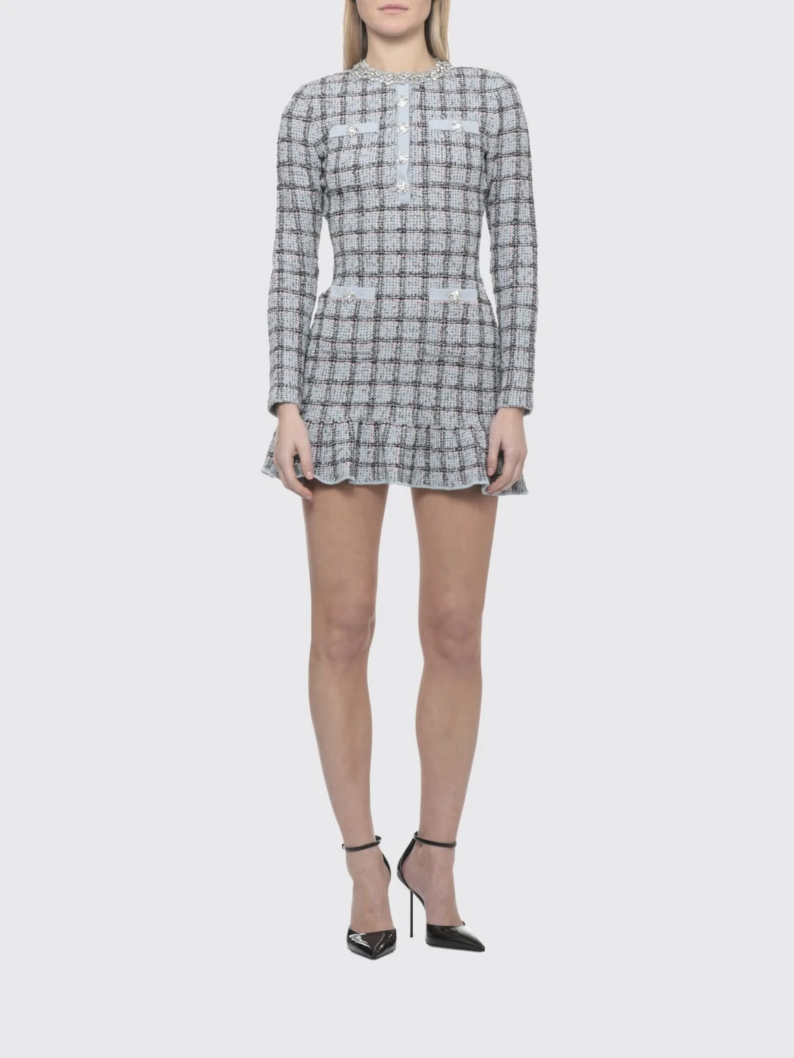 DESCRIPTION - Style: Classic - Model: Sheath - Neckline: Crewneck - Shoulders: Regular - Closure: With buttons - Pockets: Patch pocket with button - Bottom: With flounce - Length: Mini dresses - Occasion: Ceremony and cocktail dresses, Evening and party dresses - Sleeves: Long sleeve dresses - Materials: Cotton, Wool - Pattern: Tartan DETAILS AND CARE Composition 63% Cotton 18% Polyamide 13% Polyester 6% Woo SIZE AND FIT Sizes not available Size and fit Slim fit Designer code: SS26187SBL BLUE Giglio Code: I11289 Designer: Self-Portrait Collection: Clothing Self-Portrait Category: Clothing > Dress
