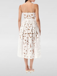 DESCRIPTION - Style: Bohemien - Neckline: V neckline - Shoulders: Regular - Closure: Back closure with zip - Bottom: With straight hemline - Waist: With bow - Length: Midi dresses - Occasion: Morning dresses - Sleeves: Off-the-shoulder dresses - Materials: Macrame - Pattern: Plain-colored DETAILS AND CARE Composition 100% cotton Lining 100% polyester SIZE AND FIT Sizes not available Size and fit Regular fit Designer code: PF25013MW WHITE Giglio Code: H35963 Designer: Self-Portrait Collection: Self-Portrait Woman Category: Clothing Self-Portrait