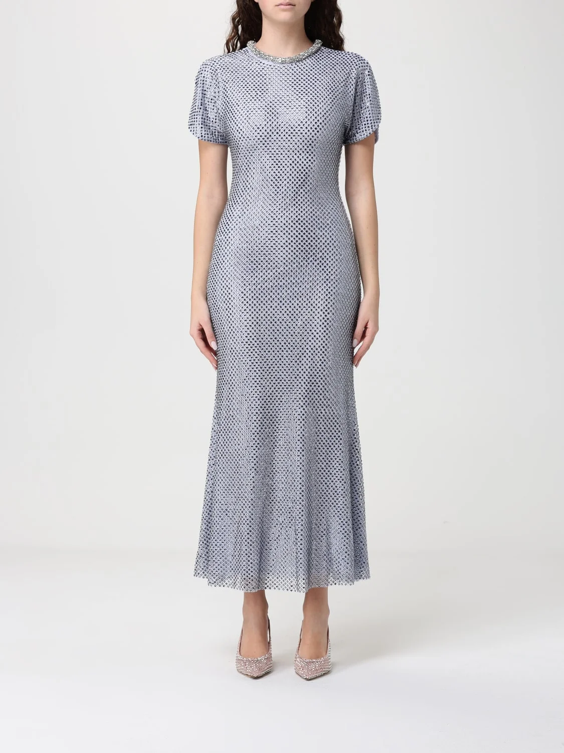 DESCRIPTION - Style: Elegant, Glamour - Details: With rhinestones - Neck: Jewel - Neckline: Crewneck - Shoulders: Regular - Closure: Back closure with zip - Bottom: With straight hemline - Length: Long dresses - Occasion: Ceremony and cocktail dresses, Evening and party dresses - Sleeves: Short-sleeve dresses - Materials: Crystals, Jersey - Pattern: Embroidery, Plain-colored DETAILS AND CARE Composition not available SIZE AND FIT Sizes not available Size and fit Regular fit Designer code: RS26506MBL BLUE Giglio Code: H81544 Designer: Self-Portrait Collection: Clothing Self-Portrait Category: Clothing > Dress