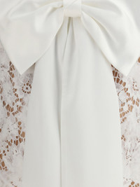 White Lace Satin Bow Mini Dress