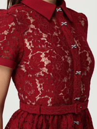 DESCRIPTION - Style: Romantic - Details: With rhinestones - Neck: Classic - Shoulders: Regular - Closure: Side closure with zip - Waist: With adjustable belt - Bottom: Weaved - Length: Midi dresses - Occasion: Evening and party dresses - Sleeves: undefined - Materials: Lace - Pattern: undefined DETAILS AND CARE Composition 70% PA 30% CO SIZE AND FIT Sizes not available Size and fit Slim fit Designer code: PF25006MBBU BURGUNDY Giglio Code: H11976 Designer: Self-Portrait Collection: Self-Portrait Woman Category: Clothing Self-Portrait