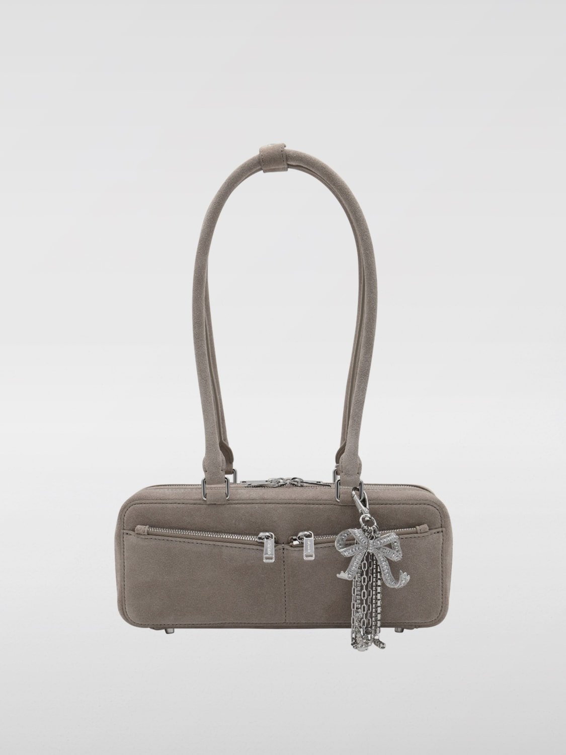 DESCRIPTION - Style: Glamour - Details: Jewel - Model: Shoulder - Closure: With zip - Pockets: With zip - Bottom: With protective feet at the bottom - Shape: Rectangular - Handle: Double - Materials: Suede - Pattern: Plain-colored DETAILS AND CARE Composition _100% LE SIZE AND FIT Sizes Width : 27 cm Height: 11 cm Depth: 9 cm Designer code: PF25315AGR GREY Giglio Code: H13986 Designer: Self-Portrait Collection: Self-Portrait Woman Category: Bags Self-Portrait