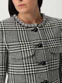 DESCRIPTION - Style: Elegant - Details: With rhinestones - Shoulders: Regular - Sleeves: Long - Closure: With buttons - Bottom: With straight hemline - Pockets: Patch with flap - Length: Short jackets - Materials: Wool blend - Pattern: Check DETAILS AND CARE Composition not available SIZE AND FIT Sizes not available Size and fit Regular fit Designer code: PF25111JBL BLACKANDWHITE Giglio Code: H13517 Designer: Self-Portrait Collection: Self-Portrait Woman Category: Clothing Self-Portrait