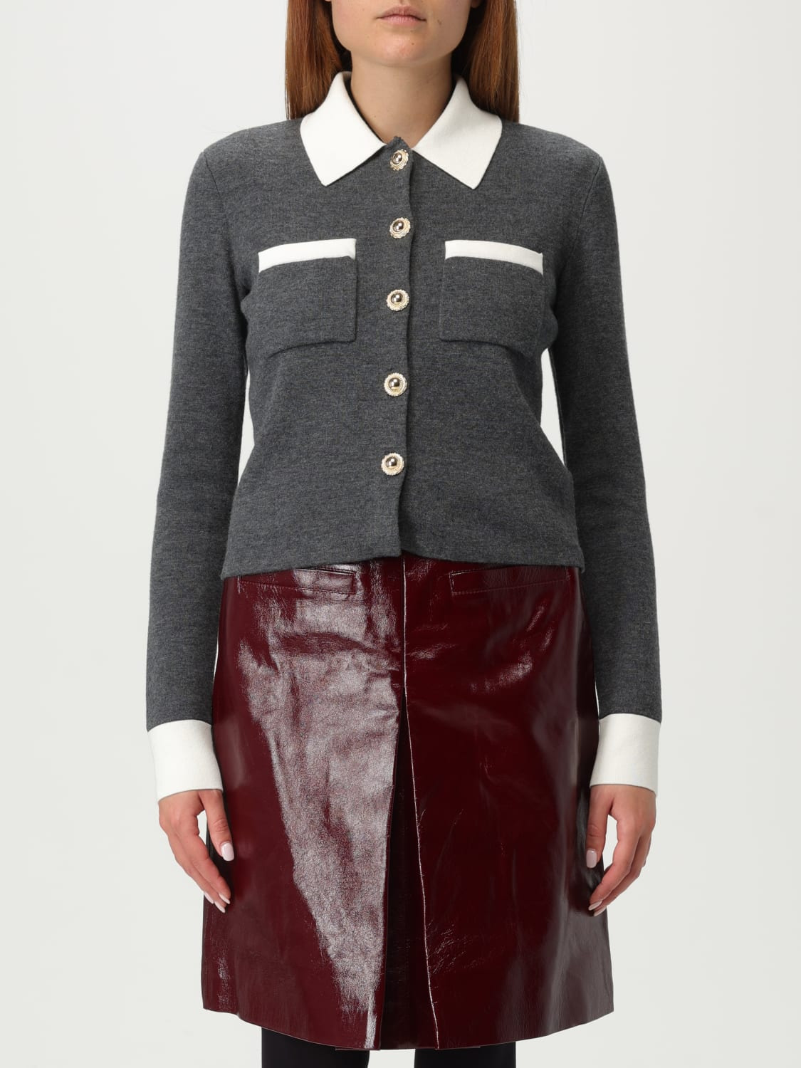 DESCRIPTION - Style: Classic - Details: WIth contrasting edges - Model: Polo - Neck: Classic, Ribbed - Shoulders: Regular - Sleeves: Long - Cuffs: Stretch - Closure: With buttons - Pockets: Patch pocket - Bottom: With straight hemline - Materials: Cashmere, Wool - Pattern: Plain-colored DETAILS AND CARE Composition 83% lana 9% poliammide 7% cashmere 1% elastan SIZE AND FIT Sizes not available Size and fit Slim fit Designer code: PF25048CGR GREY Giglio Code: H11763 Designer: Self-Portrait Collection: Self-Portrait Woman Category: Clothing Self-Portrait