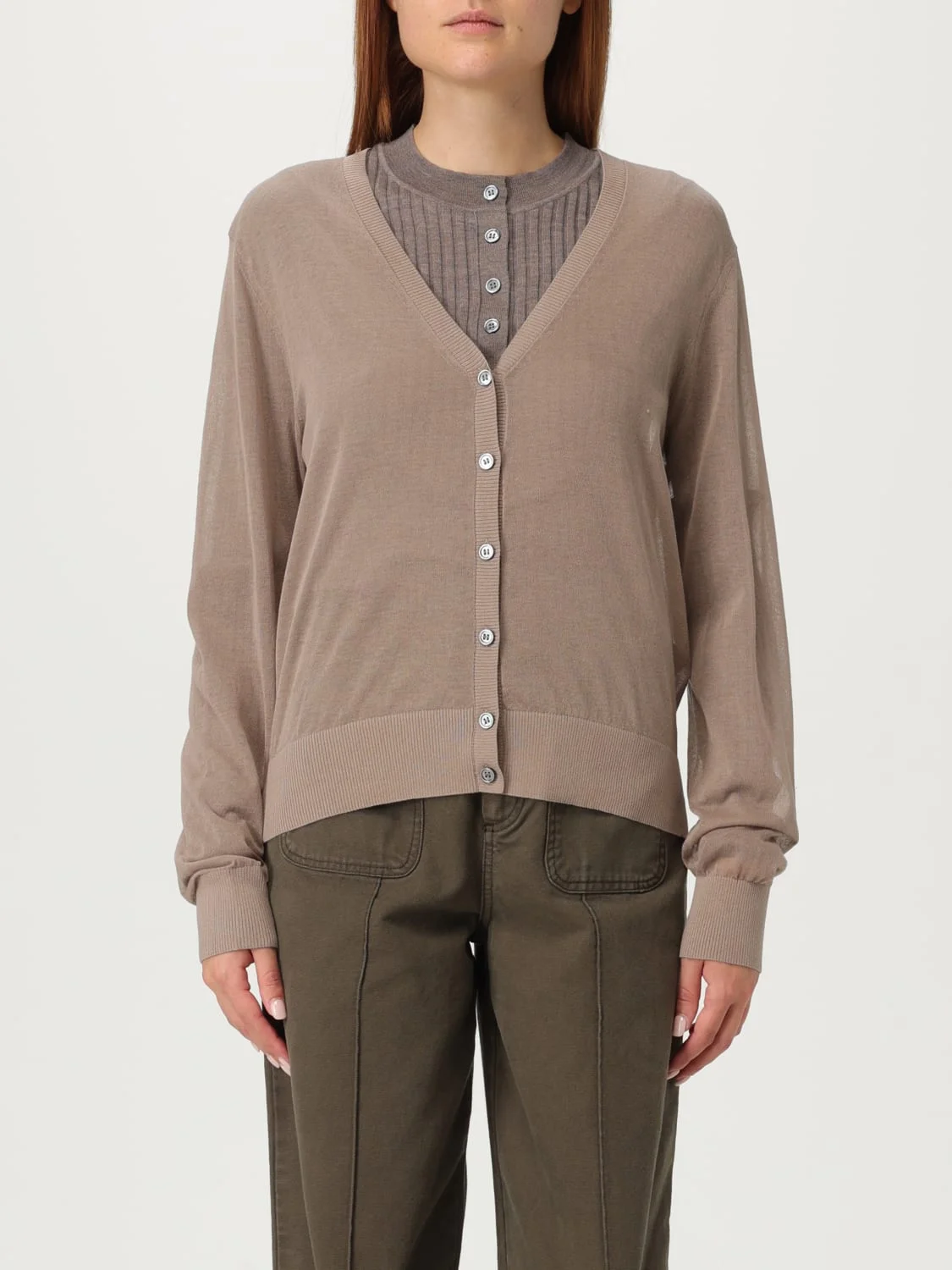 DESCRIPTION - Style: Basic, Casual - Neckline: V neckline - Shoulders: Regular - Sleeves: Long - Cuffs: Ribbed - Closure: With buttons - Bottom: With ribbed edges, With straight hemline - Materials: Cotton blend - Pattern: Plain-colored DETAILS AND CARE Composition 80% COTONE, 20% POLIAMMIDE/NYLON SIZE AND FIT Sizes not available Size and fit Regular fit Designer code: CAR1602ETRETAT BEI11 Giglio Code: H21302 Designer: Soeur Collection: Soeur Woman Category: Clothing Soeur