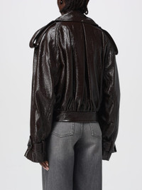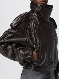 Short trench coat with patent leather effect - COFFEE
