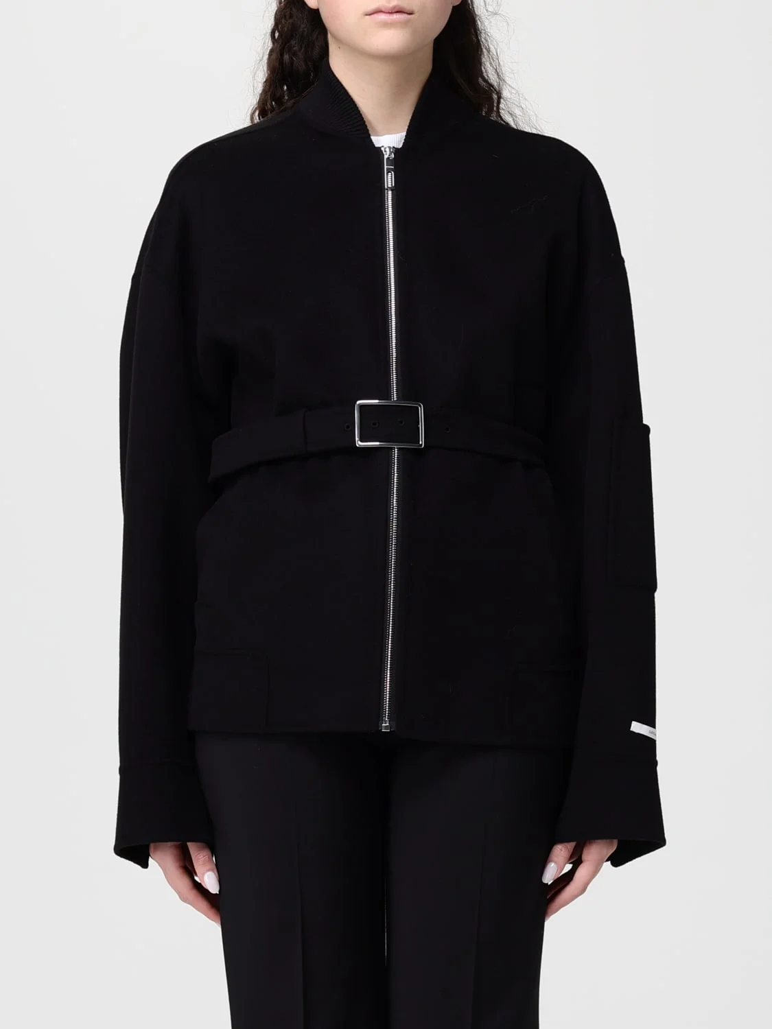 belted zip-up jacket
