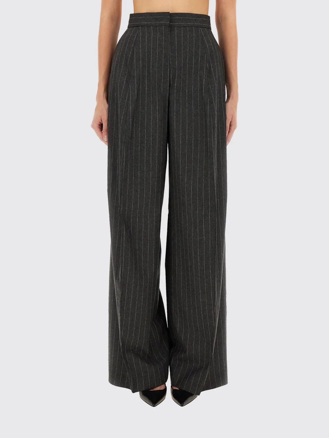 pinstripe pleated trousers