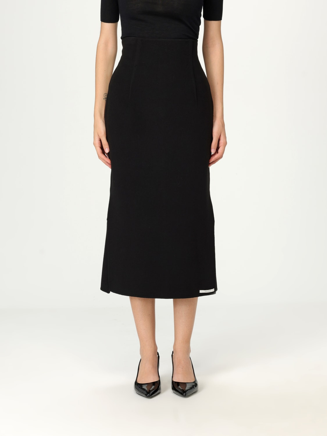 DESCRIPTION - Style: Minimal - Closure: Back closure with zip - Waist: High - Bottom: With back slit - Length: Midi skirts - Materials: Virgin wool - Pattern: Plain-colored DETAILS AND CARE Composition 100% VIRGIN WOOL SIZE AND FIT Sizes not available Size and fit Regular fit Designer code: 2512101011600 013 Giglio Code: H07945 Designer: Sportmax Collection: Sportmax Woman Category: Clothing Sportmax