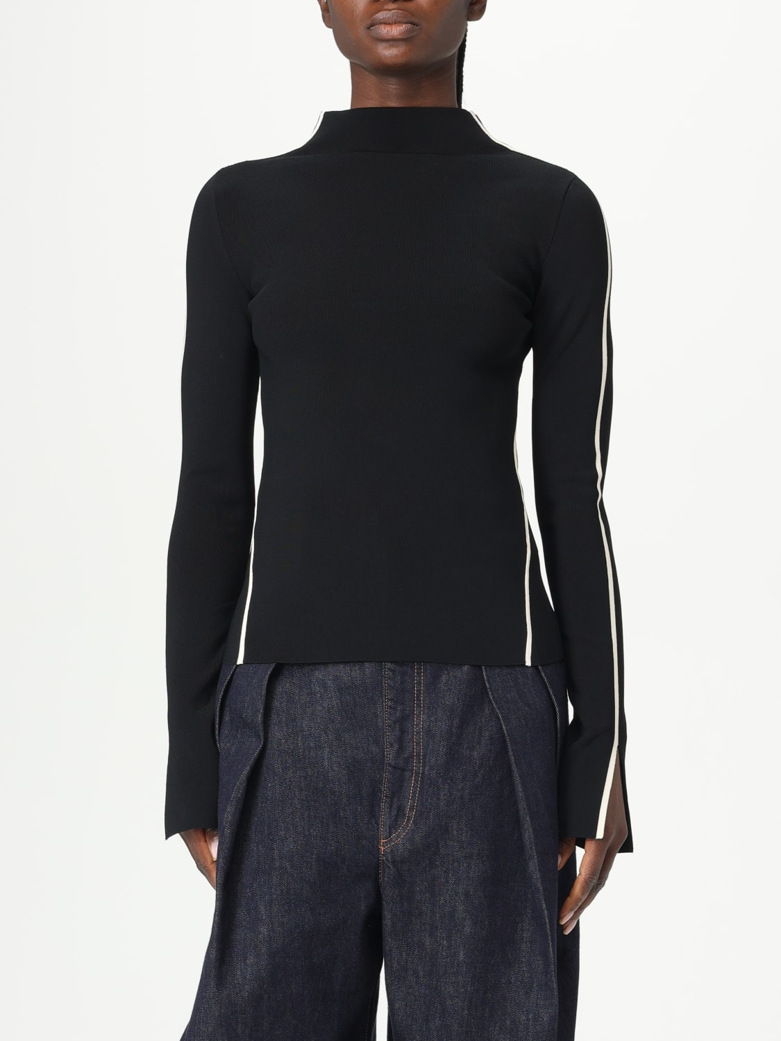 DESCRIPTION - Style: Casual - Model: Cut-out - Neck: High - Shoulders: Regular - Sleeves: Long - Bottom: With straight hemline - Materials: Viscose blend - Pattern: Plain-colored DETAILS AND CARE Composition fabric 64% Viscose, 22% Polyamide, 13% P SIZE AND FIT Sizes not available Size and fit Slim fit Designer code: 2512361131600 005 Giglio Code: 426156 Designer: Sportmax Collection: Sportmax Woman Category: Clothing Sportmax
