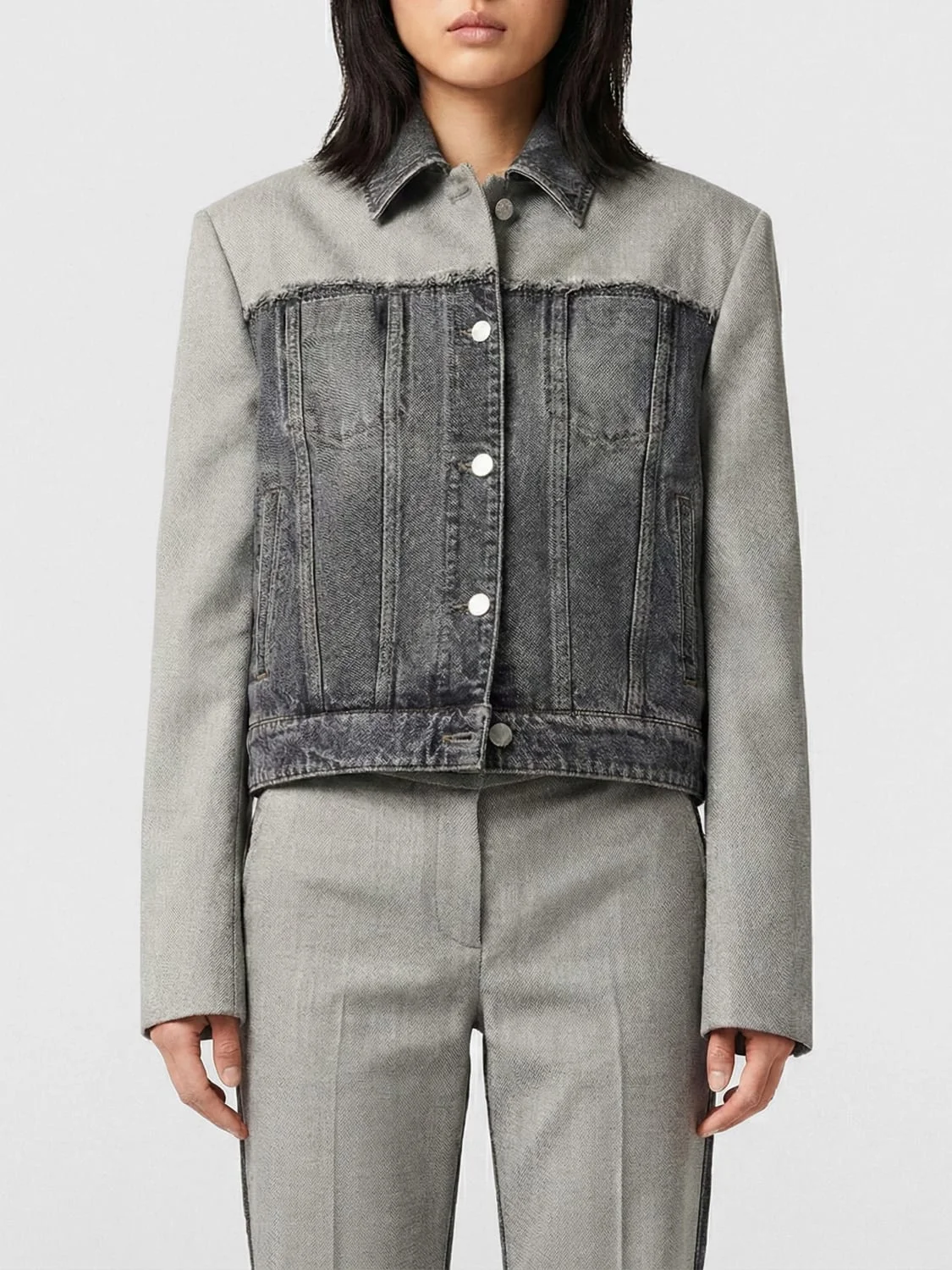 frayed panelled jacket