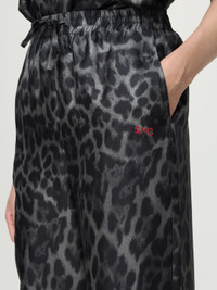 Leopard-print organic silk-satin wide-leg pants Dark gray