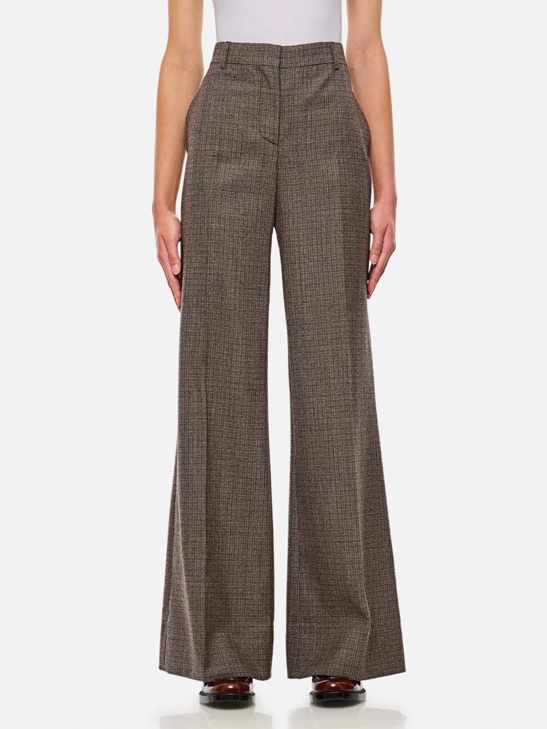 DESCRIPTION - Pockets: America , Back slit with button - Waist: High , With loops - Bottom: With straight hemline - Closure: With button and zip - Materials: Wool - Pattern: Houndstooth DETAILS AND CARE Composition Wool 100% SIZE AND FIT Sizes not available Size and fit Regular fit Designer code: 6402263EJ790 2425 Giglio Code: G13071 Designer: Stella McCartney Collection: Stella McCartney Woman Category: Clothing Stella McCartney