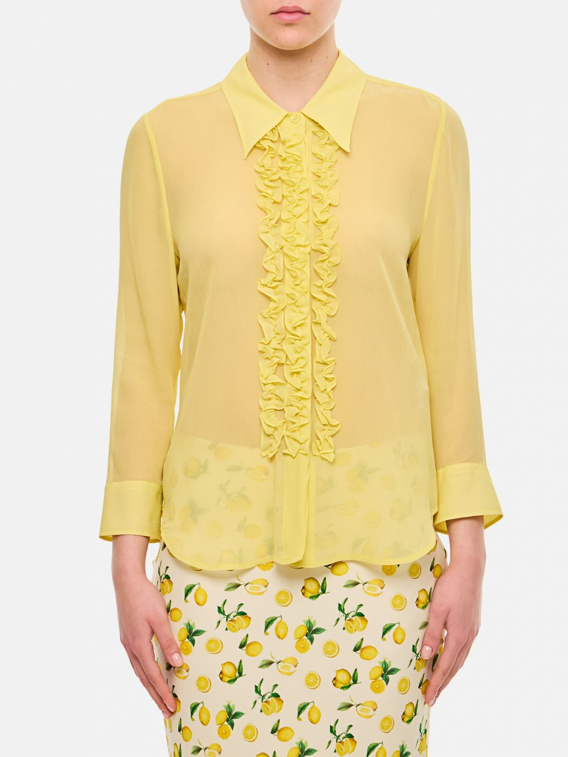Sheer Ruffled Silk Tuxedo Shirt
