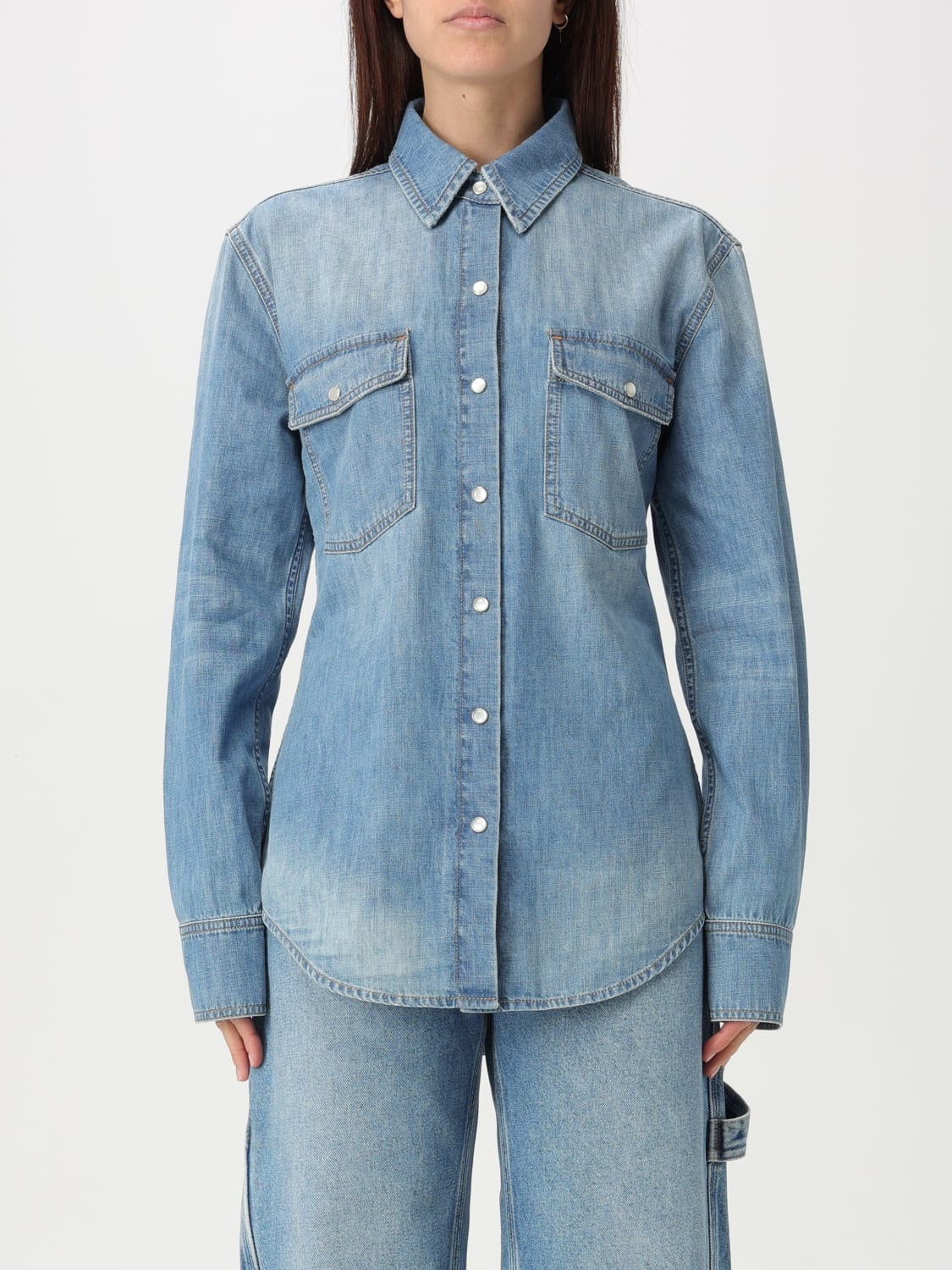 DESCRIPTION - Style: Casual - Neck: Classic - Shoulders: Regular - Closure: With buttons - Bottom: With curved hemline - Pockets: Patch with flap - Sleeves: Long sleeve shirts - Materials: Cotton denim - Pattern: Plain-colored DETAILS AND CARE Composition Organic Cotton 100% SIZE AND FIT Sizes not available Size and fit Slim fit Designer code: 6D03623SQH09 4590 Giglio Code: G48136 Designer: Stella McCartney Collection: Stella McCartney Woman Category: Clothing Stella McCartney