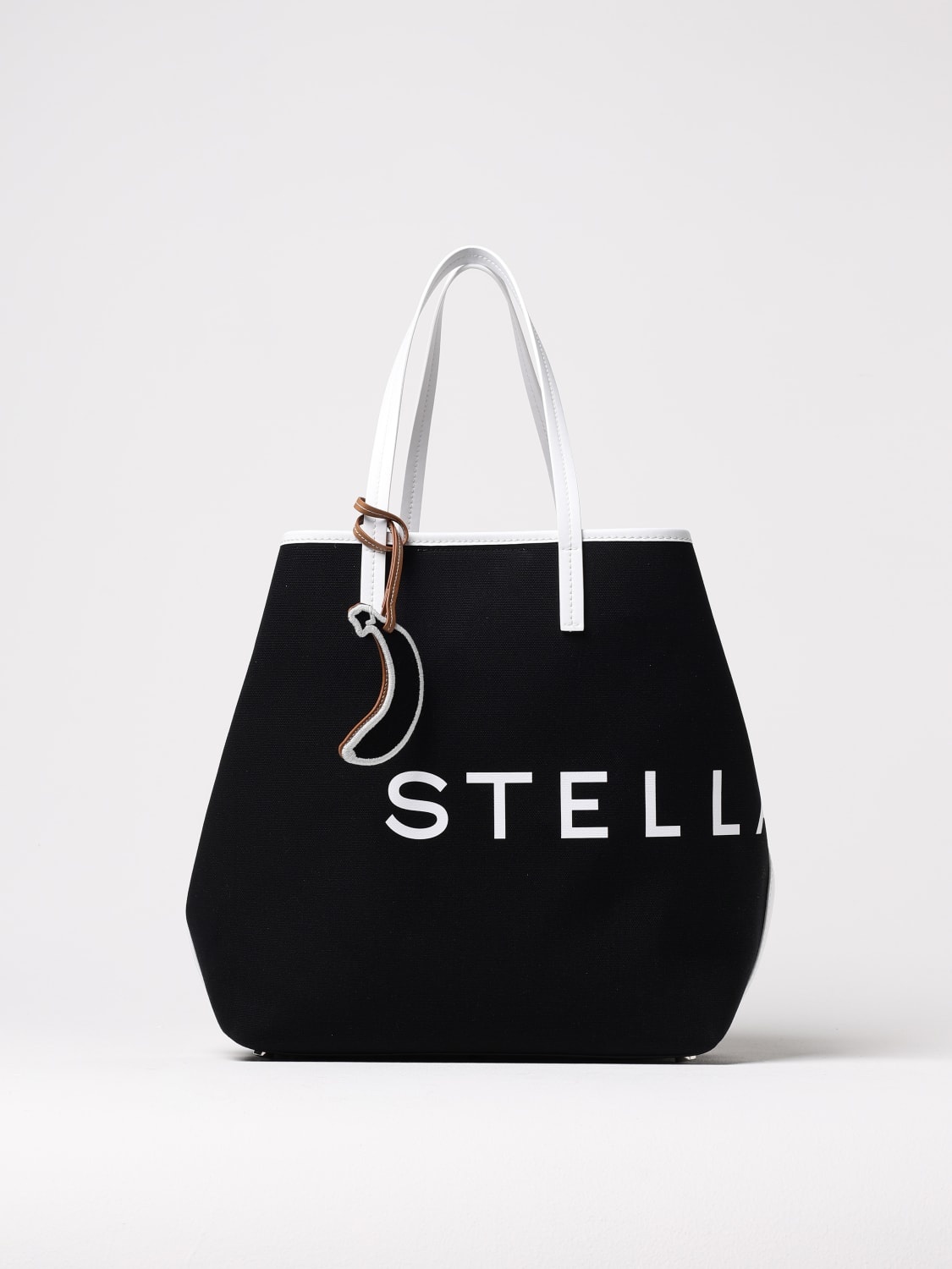DESCRIPTION - Logo: Print - Details: With charms - Lining: With removable pouch, Canvas, With logo - Model: Shoulder - Shape: Flared - Handle: Double - Materials: Canvas, Synthetic leather - Pattern: All-over logo DETAILS AND CARE Composition F: 70% TRUE HEMP, 30% LYOCELL, T1: 100% ABAC SIZE AND FIT Sizes Width : 52 cm Height: 34 cm Depth: 17 cm Handle height: 25 cm Designer code: 7B0048WP0515 1000 Giglio Code: G46043 Designer: Stella McCartney Collection: Stella McCartney Woman Category: Bags Stella McCartney