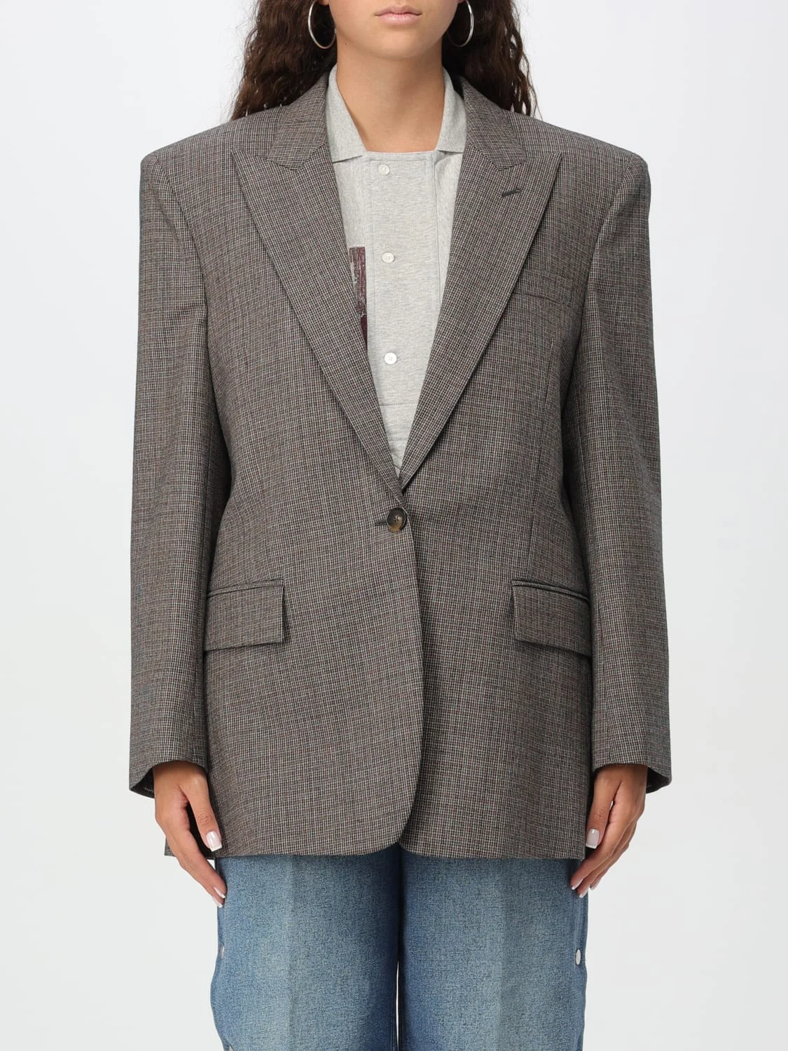 DESCRIPTION - Shoulders: Padded, Regular - Sleeves: Long - Pockets: Slit pocket, With flap - Bottom: With straight hemline - Neck: Lapel - Closure: 1-button - Materials: Wool - Pattern: Check DETAILS AND CARE Composition Fabric 100% SIZE AND FIT Sizes not available Size and fit Relaxed fit Designer code: 6501233EJ790 2425 Giglio Code: G02568 Designer: Stella McCartney Collection: Stella McCartney Woman Category: Clothing Stella McCartney