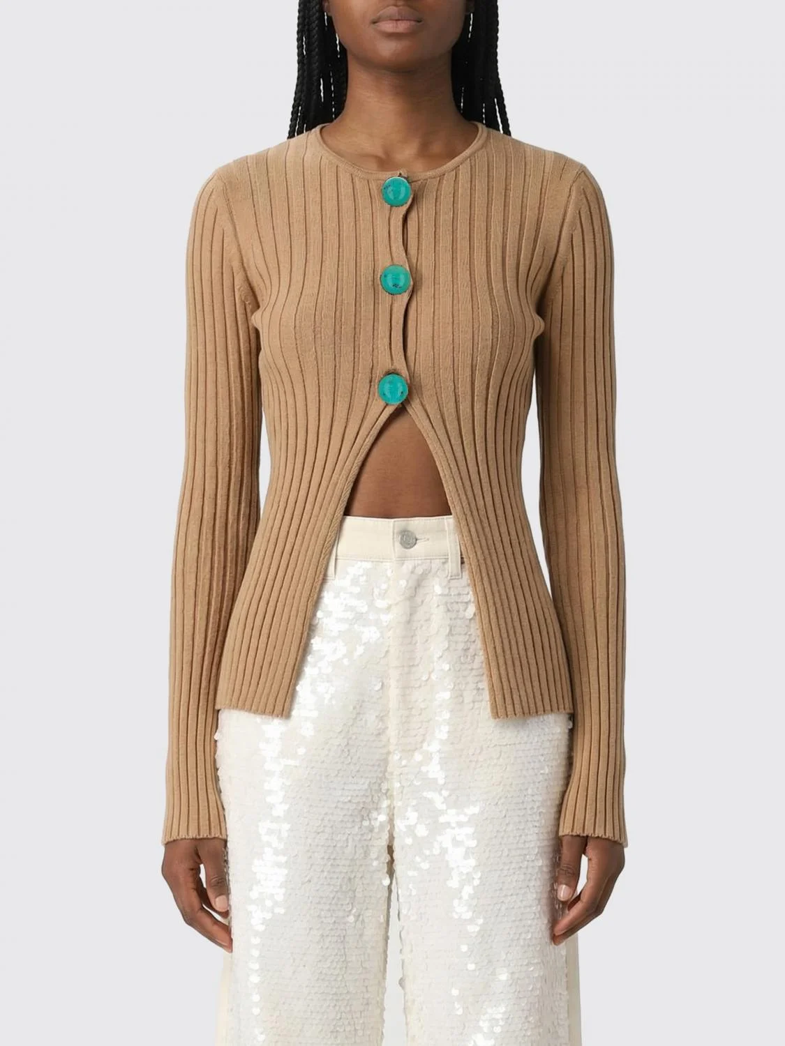 ribbed buttoned cardigan
