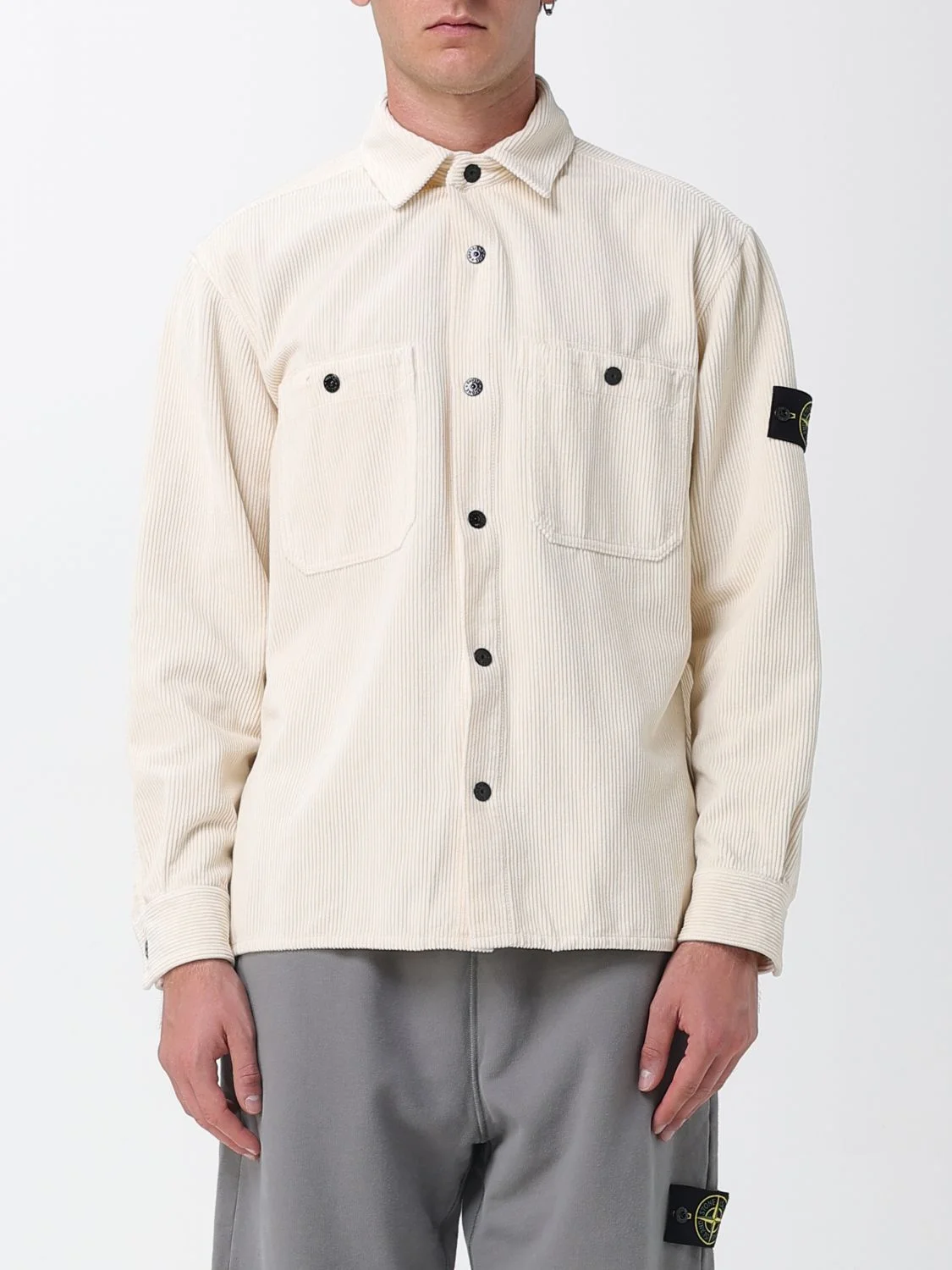 DESCRIPTION - Style: Casual - Model: Shirt - Neck: Classic - Shoulders: Relaxed - Sleeves: Long - Closure: With buttons - Pockets: Patch pocket - Bottom: With straight hemline - Length: Short jackets - Materials: Velvet - Pattern: Plain-colored - Logo: Compass Stone Island DETAILS AND CARE Composition TESSUTO PRINCIPALE: 100%COTONE SIZE AND FIT Sizes not available Size and fit Relaxed fit Designer code: 1200012S0212 V0093 Giglio Code: 431865 Designer: Stone Island Collection: Stone Island Men Category: Clothing Stone Island