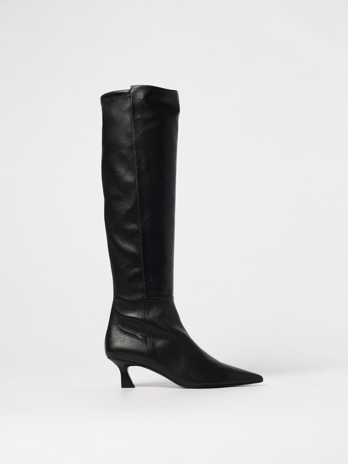 DESCRIPTION - Lining: With logo - Model: Slip on - Toe: Almond - Shaft: Knee-high - Sole: Leather - Heel: undefined - Materials: Smooth calfskin - Pattern: Plain-colored DETAILS AND CARE Composition W FTW (Boots); Sole: R/P/Lthr of , Upper SIZE AND FIT Sizes Heel: 5 cm Designer code: SM444 BLK Giglio Code: 433572 Designer: Stuart Weitzman Collection: Stuart Weitzman Woman Category: Shoes Stuart Weitzman