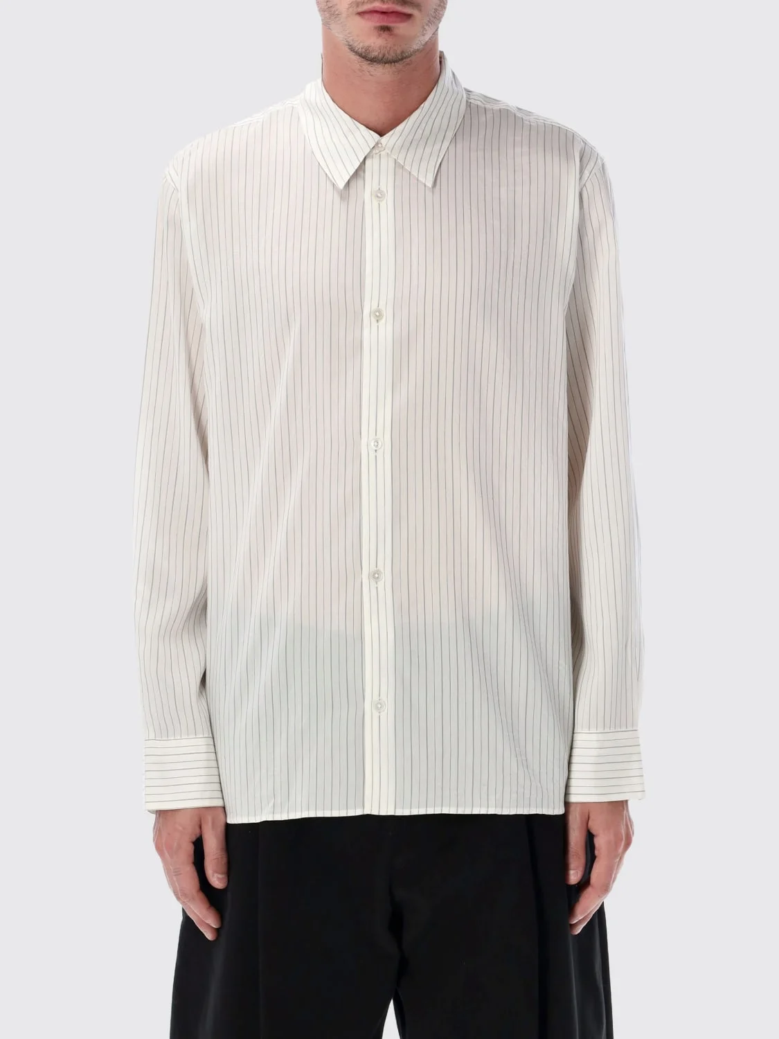DESCRIPTION - Style: Classic - Neck: Classic - Shoulders: Regular - Cuffs: 1-button - Closure: With buttons - Bottom: With straight hemline - Sleeves: Long sleeve shirts - Materials: Cotton, Silk - Pattern: Stripes DETAILS AND CARE Composition 96% silk 4% cotton SIZE AND FIT Sizes not available Size and fit Regular fit Designer code: 1126S EB Giglio Code: H54103 Designer: Studio Nicholson Collection: Studio Nicholson Men Category: Clothing Studio Nicholson