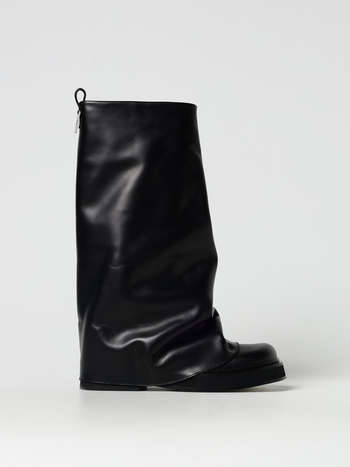 DESCRIPTION - Style: Underground - Logo: Metallic, Back - Details: With back tab - Lining: Leather, With printed logo - Model: Slip on - Toe: Round - Shaft: Knee-high - Sole: Leather - Heel: Low - Materials: Smooth calfskin - Pattern: Plain-colored DETAILS AND CARE Composition GENERAL CALF LEATHER BOS TAURUS 100 - SIZE AND FIT Sizes not available Designer code: 241WSH00798LBT019AA 100 Giglio Code: G41502 Designer: The Attico Collection: The Attico Woman Category: Shoes The Attico
