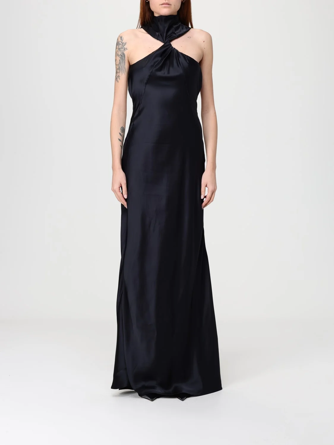 high-neck twisted maxi dress