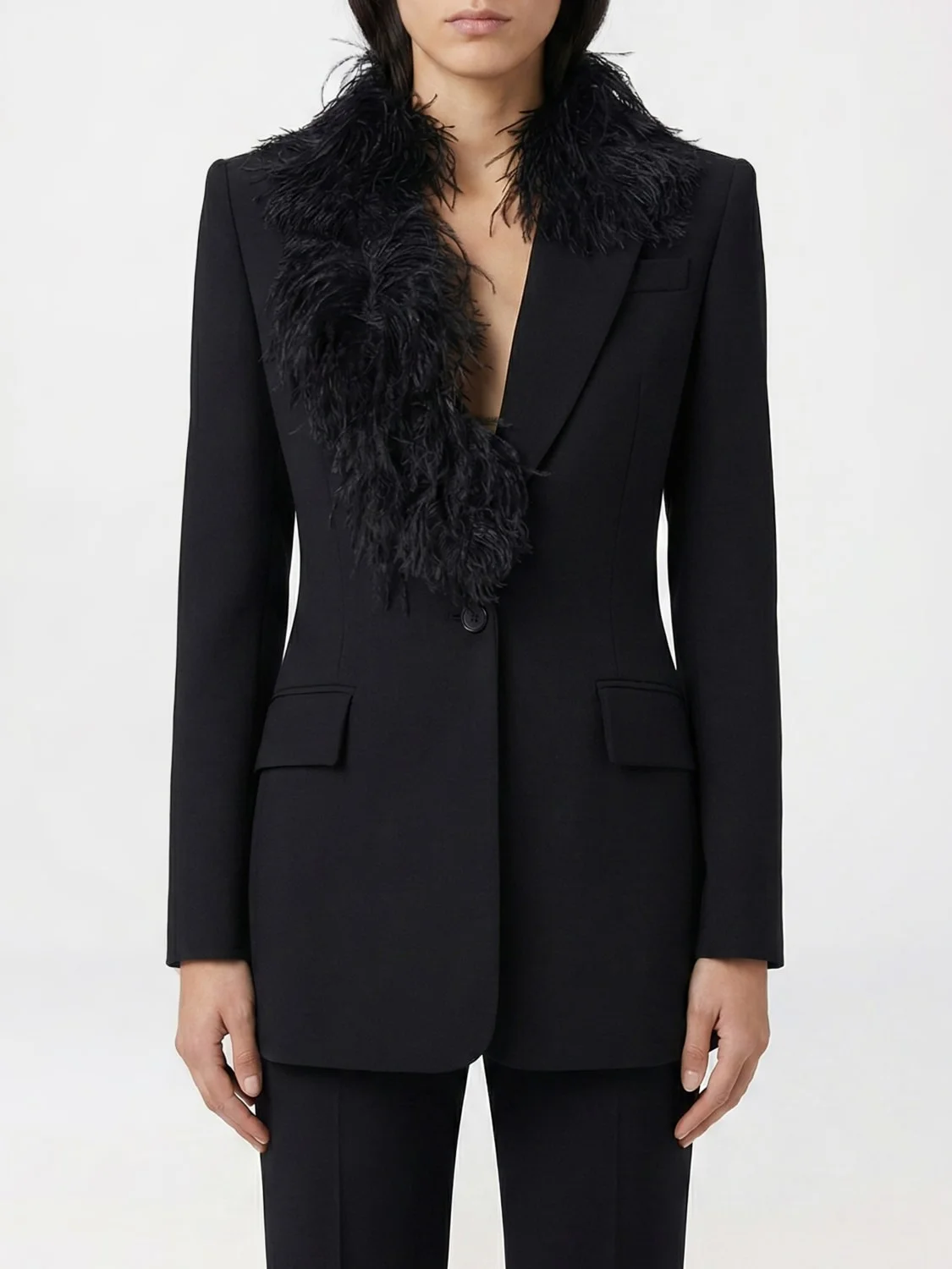 Blazer With Ostrich Feathers Black