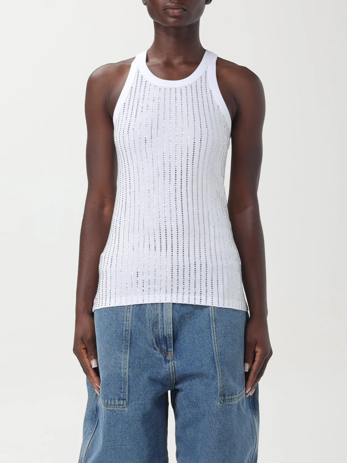 DESCRIPTION - Style: Basic - Neckline: Crewneck - Sleeves: Sleeveless - Bottom: With straight hemline - Materials: Cotton - Pattern: Plain-colored DETAILS AND CARE Composition Cotton | 100%COTTON SIZE AND FIT Sizes not available Size and fit Slim fit Designer code: 247WCT276J050R 480 Giglio Code: F79092 Designer: The Attico Collection: The Attico Woman Category: Clothing The Attico