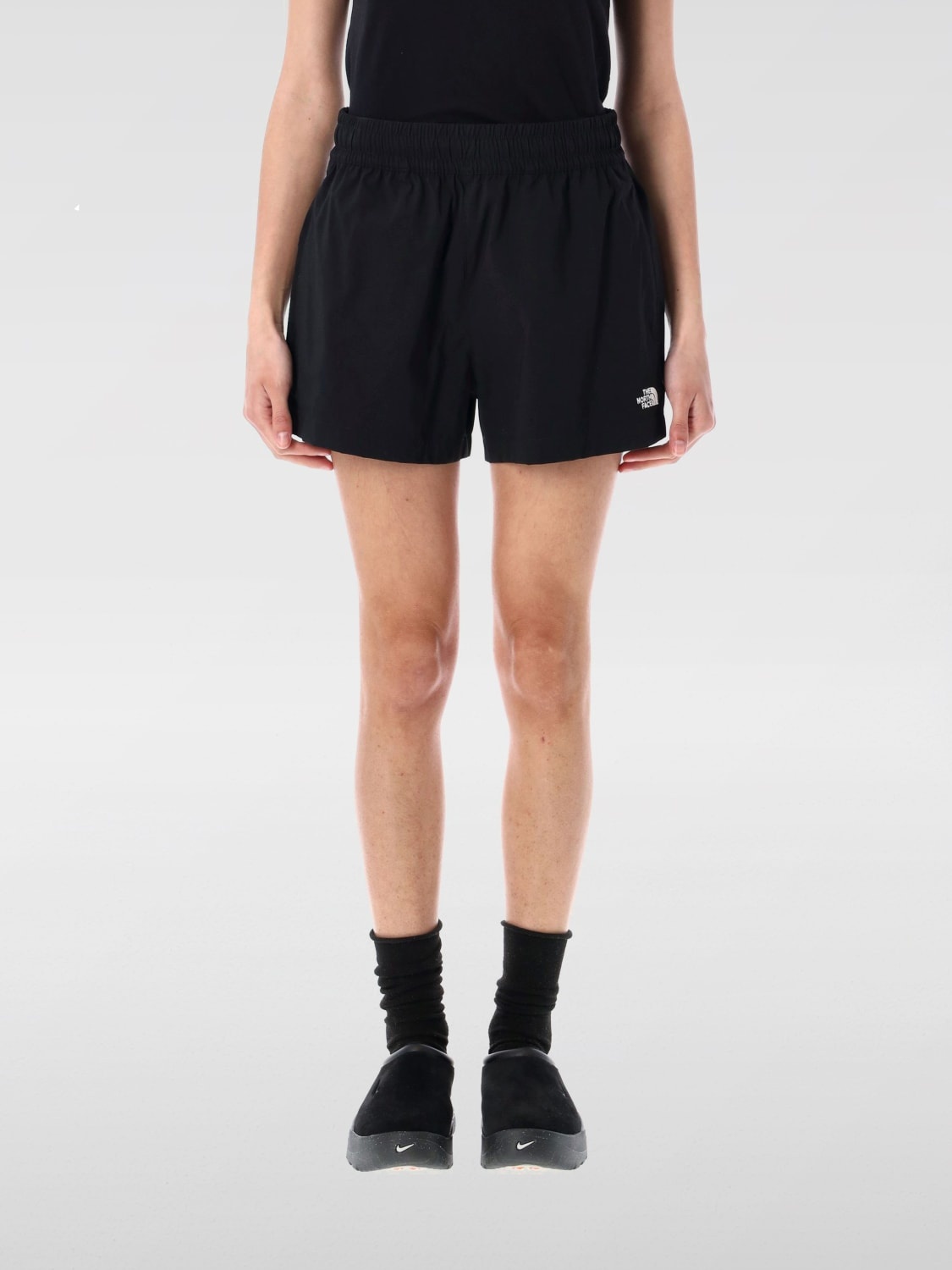 DESCRIPTION - Style: Basic, Casual - Logo: Contrasting - Pockets: America - Waist: High , Stretch - Bottom: With straight hemline - Materials: Technical fabric - Pattern: Plain-colored DETAILS AND CARE Composition 94% nylon 6% elastane SIZE AND FIT Sizes not available Size and fit Regular fit Designer code: NF0A8BJ1 JK31 Giglio Code: G90368 Designer: The North Face Collection: The North Face Woman Category: Clothing The North Face