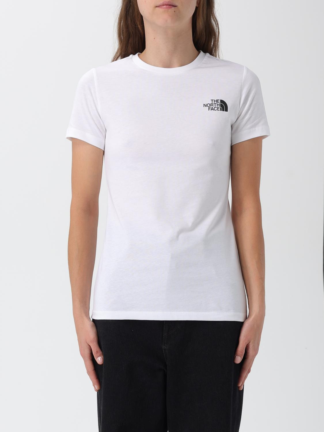 DESCRIPTION - Style: Sporty - Logo: Contrasting - Model: Crewneck - Neckline: Crewneck - Shoulders: Regular - Sleeves: Short - Bottom: With straight hemline - Materials: Cotton - Pattern: Logo DETAILS AND CARE Composition 100% COTTON SIZE AND FIT Sizes not available Size and fit Slim fit Designer code: NF0A87NM FN41 Giglio Code: H55964 Designer: The North Face Collection: The North Face Woman Category: Clothing The North Face