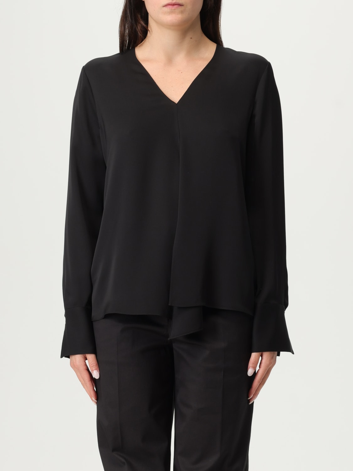 DESCRIPTION - Style: Basic - Neckline: V neckline - Shoulders: Regular - Bottom: With straight hemline - Sleeves: Long sleeve tops - Materials: Silk - Pattern: Plain-colored DETAILS AND CARE Composition 100 AF SIZE AND FIT Sizes not available Size and fit Regular fit Designer code: P0102507 001 Giglio Code: 429788 Designer: Theory Collection: Theory Woman Category: Clothing Theory