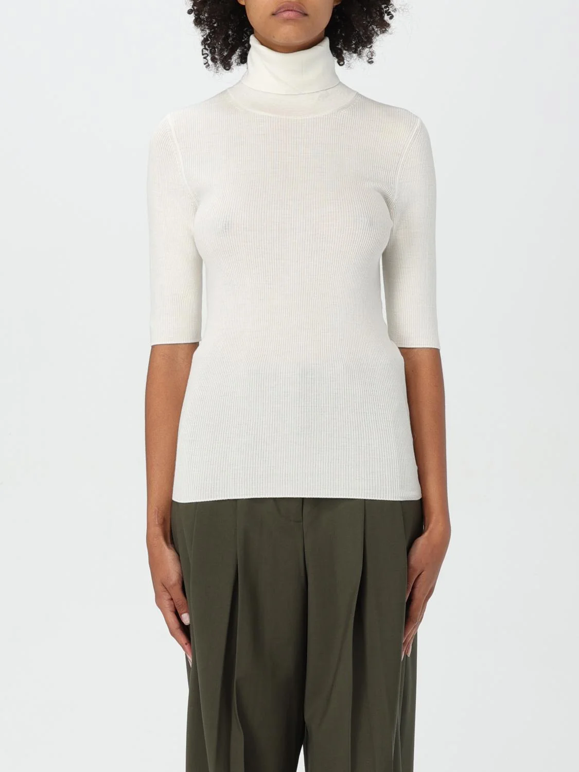 DESCRIPTION - Neck: Turtleneck - Shoulders: Regular - Sleeves: Short - Bottom: With straight hemline - Materials: Wool blend - Pattern: Plain-colored DETAILS AND CARE Composition 97% WOOL, 3% OTHER FIBERS SIZE AND FIT Sizes not available Size and fit Slim fit Designer code: J1111703 CX1 Giglio Code: 418091 Designer: Theory Collection: Theory Woman Category: Clothing Theory