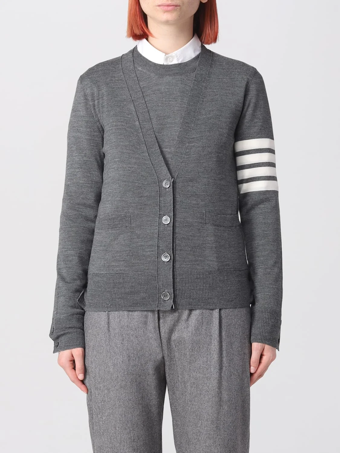 DESCRIPTION - Neckline: V neckline - Shoulders: Regular - Closure: With buttons - Logo: Thom Browne 4-bar - Materials: Virgin wool DETAILS AND CARE Composition 100% VIRGIN WOOL SIZE AND FIT Sizes not available Size and fit Regular fit Designer code: FKC334AY1014 035 Giglio Code: F13988 Designer: Thom Browne Collection: Thom Browne Woman Category: Clothing Thom Browne
