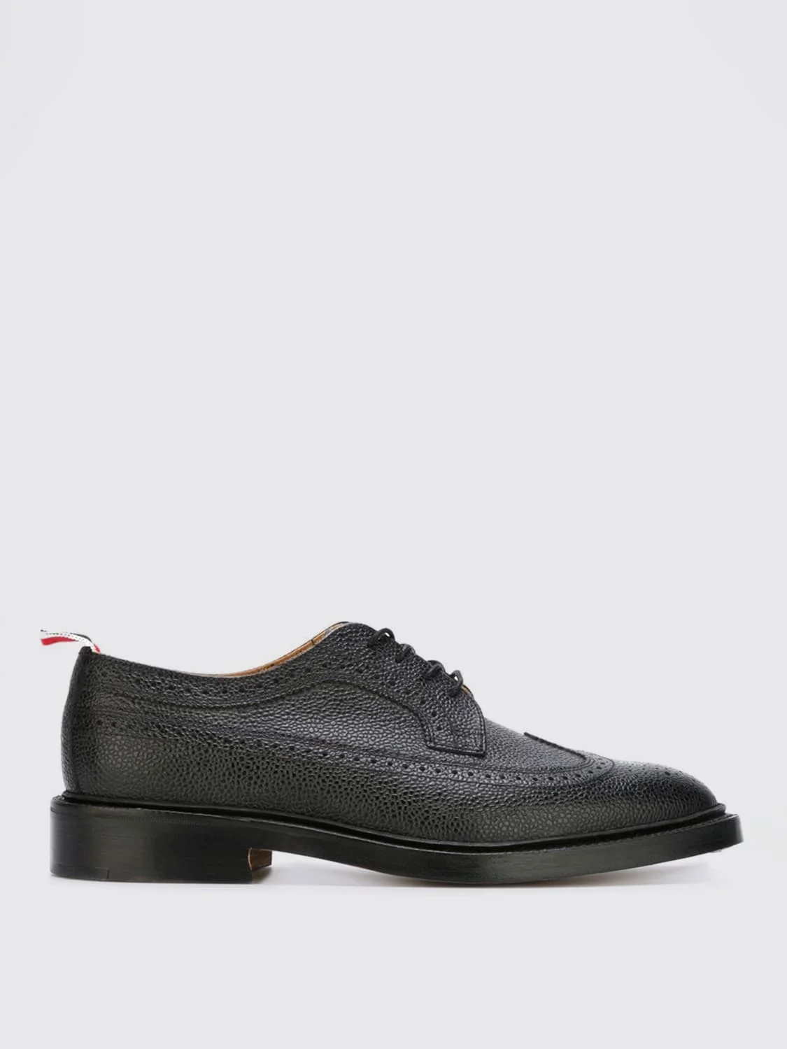 DESCRIPTION - Details: With back tab - Lining: Leather, With logo - Model: Lace up - Toe: Round - Sole: Leather - Logo: Flag - Materials: Grained calfskin - Pattern: Plain-colored DETAILS AND CARE Composition MAN LEATHER SHOES SIZE AND FIT Sizes not available Designer code: MFD002A00198 001 Giglio Code: F71367 Designer: Thom Browne Collection: Thom Browne Men Category: Shoes Thom Browne