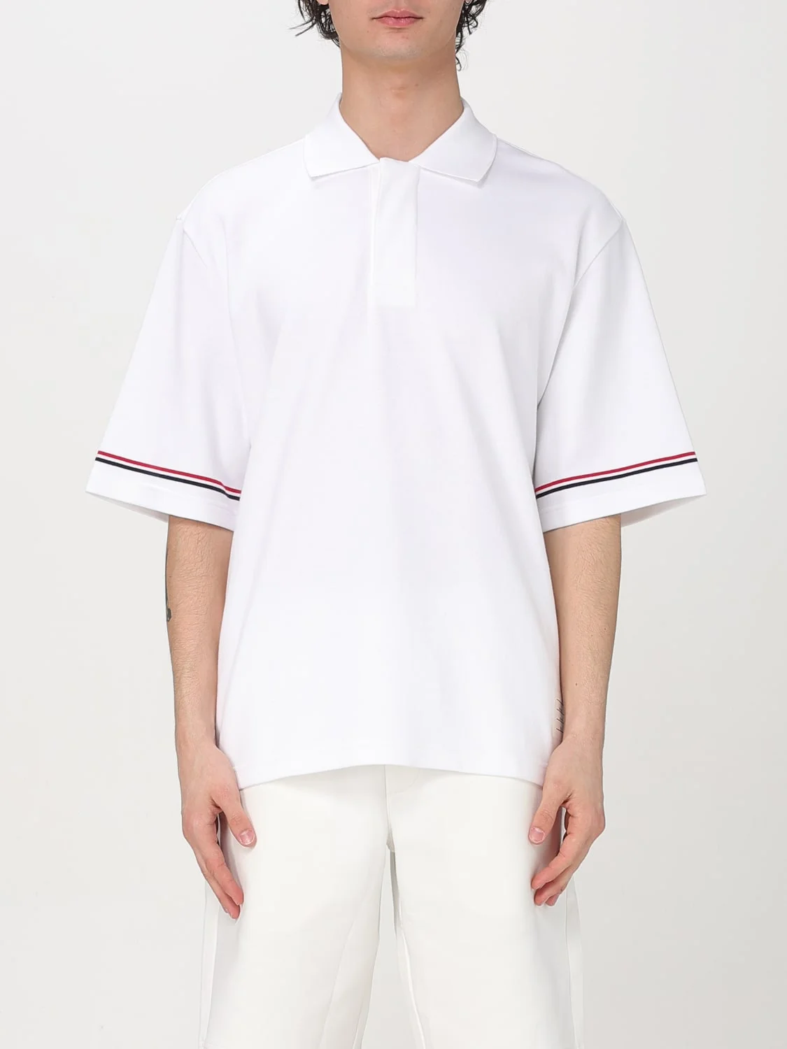 DESCRIPTION - Style: College - Details: WIth contrasting edges - Shoulders: Relaxed - Sleeves: Short - Bottom: With straight hemline - Logo: With logo - Neck: Ribbed - Occasion: Morning - Closure: Concealed - Materials: Cotton - Pattern: Stripes DETAILS AND CARE Composition 100% cotton SIZE AND FIT Sizes not available Size and fit Oversize Designer code: MJP209AJ0199 100 Giglio Code: G50263 Designer: Thom Browne Collection: Thom Browne Men Category: Clothing Thom Browne