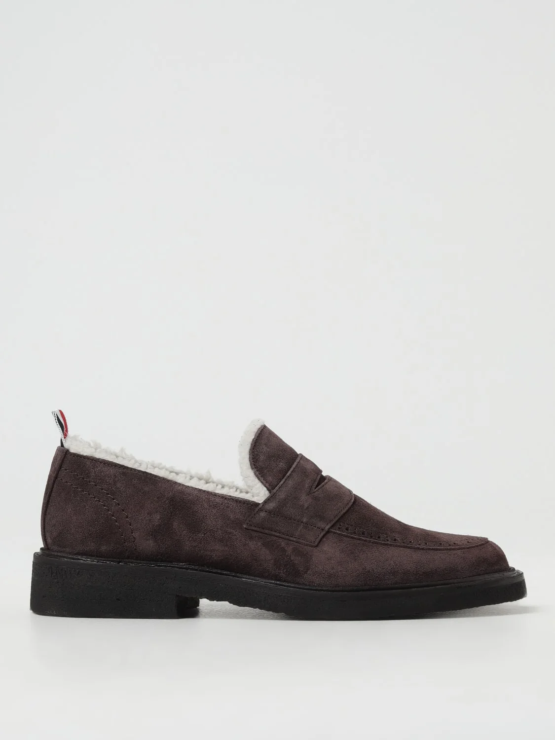 DESCRIPTION - Style: Contemporary - Logo: Back, Flag - Details: With back tab, With penny keeper - Lining: Leather, Shearling - Model: Slip on - Toe: Raised toe box, Round - Sole: Rubber - Occasion: Morning - Materials: Suede calfskin DETAILS AND CARE Composition UPPER: 100% CALF SUEDE SPLIT LEATHER ,LI SIZE AND FIT Sizes not available Designer code: MFF001GL0037 208 Giglio Code: 414155 Designer: Thom Browne Collection: Thom Browne Men Category: Shoes Thom Browne