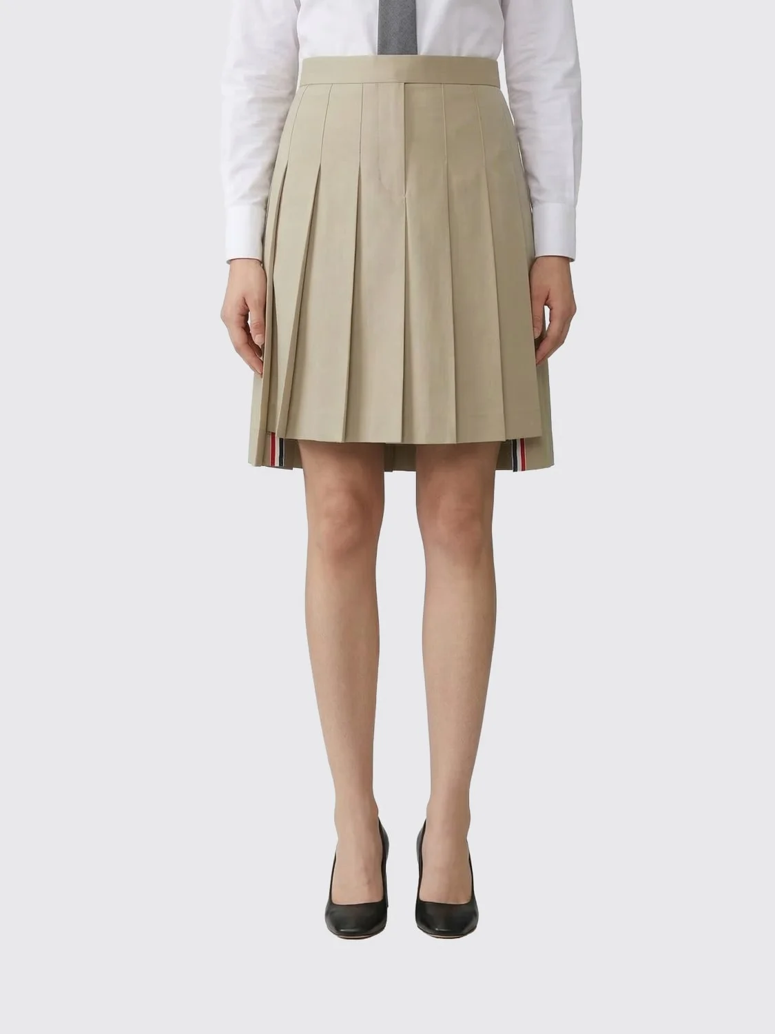 DESCRIPTION - Style: College - Waist: High , With loops - Bottom: With straight hemline - Closure: With button and zip - Length: Mini skirt - Materials: Cotton - Pattern: Plain-colored DETAILS AND CARE Composition 100% cotton SIZE AND FIT Sizes not available Size and fit Regular fit Designer code: FGCA40UF1063 260 Giglio Code: I04373 Designer: Thom Browne Collection: Clothing Thom Browne Category: Clothing > Skirt