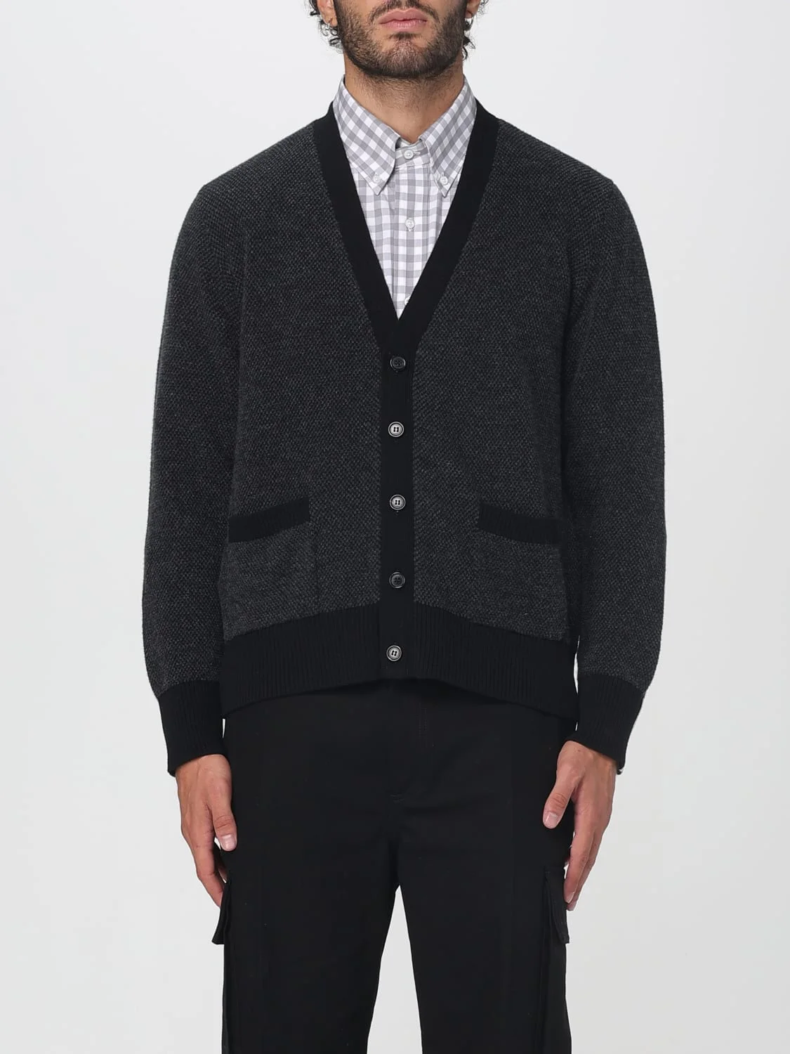 DESCRIPTION - Style: College - Neckline: V neckline - Shoulders: Regular - Sleeves: Long - Cuffs: Ribbed - Closure: With buttons - Pockets: Patch pocket - Bottom: With ribbed edges, With straight hemline - Logo: 4-bar Thom Browne - Materials: Cotton - Pattern: Plain-colored DETAILS AND CARE Composition _100%CO SIZE AND FIT Sizes not available Size and fit Regular fit Designer code: MKC607BY1029 001 Giglio Code: H26454 Designer: Thom Browne Collection: Thom Browne Men Category: Clothing Thom Browne